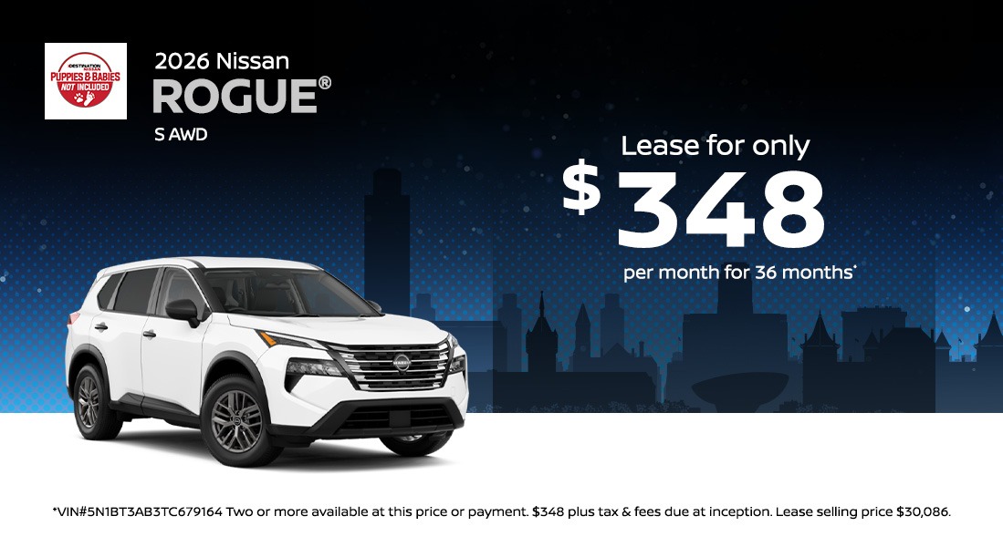 This month, you can lease the Rogue S AWD for $348 per month for 36 months, offering outstanding value on one of Nissan’s most well-rounded SUVs.